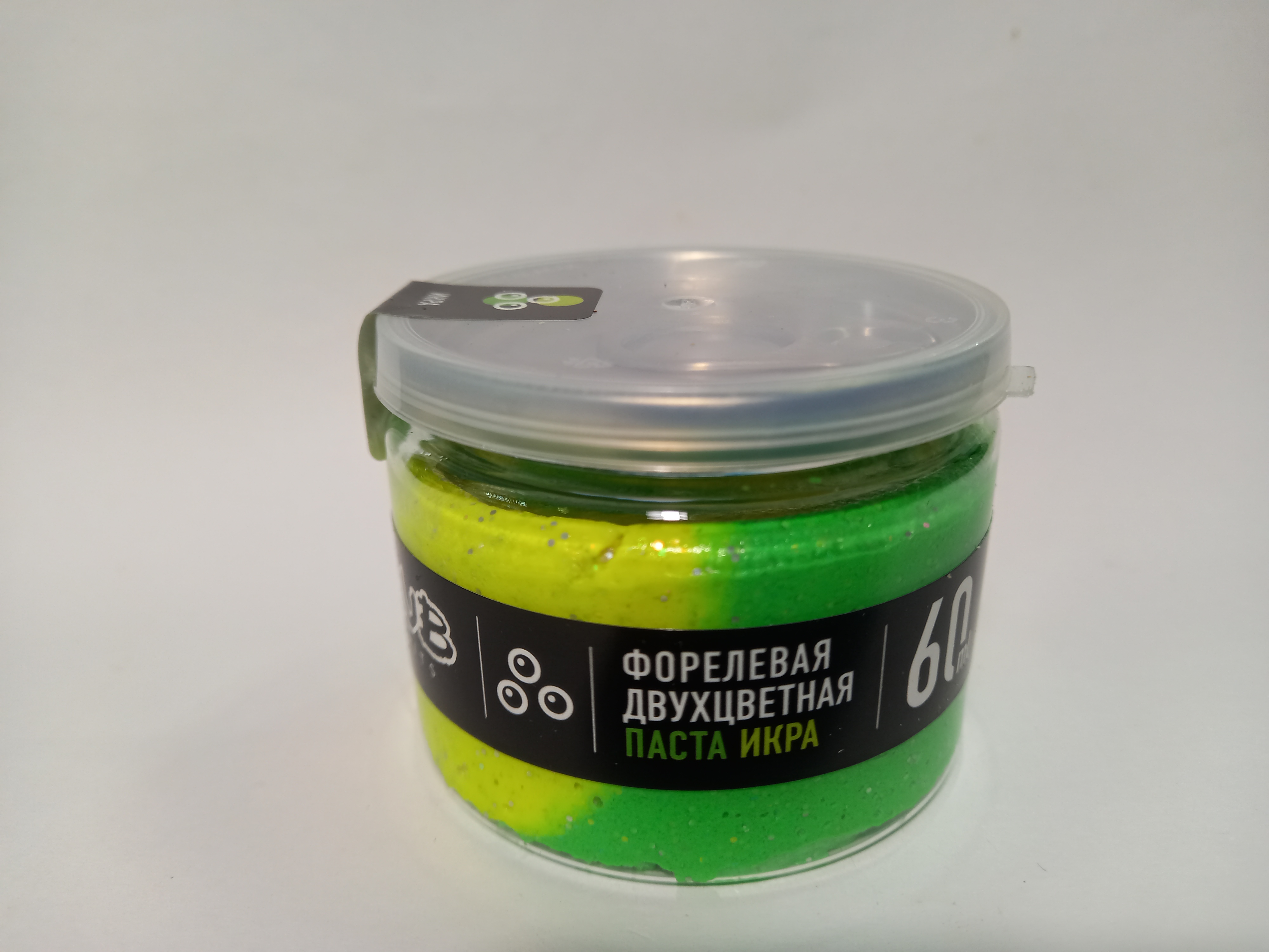 Форелевая паста "Икра" двуцветная, зелёная/лайм, флюоресцентная.