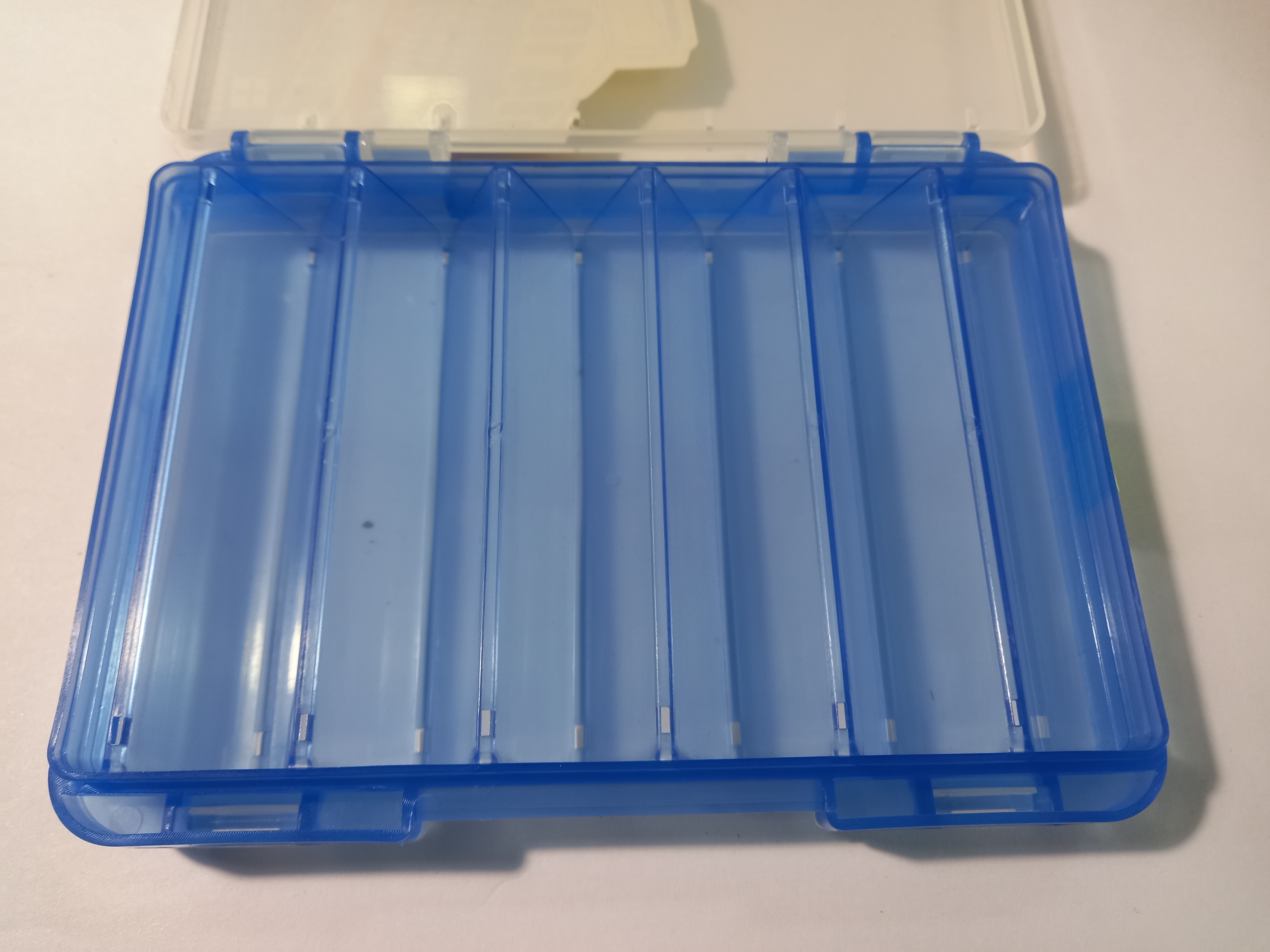 Коробочка под воблеры. 140*105*23. Изготовлена из противоударной платмассы. В отсеках имеются отверстия для просушки приманок.