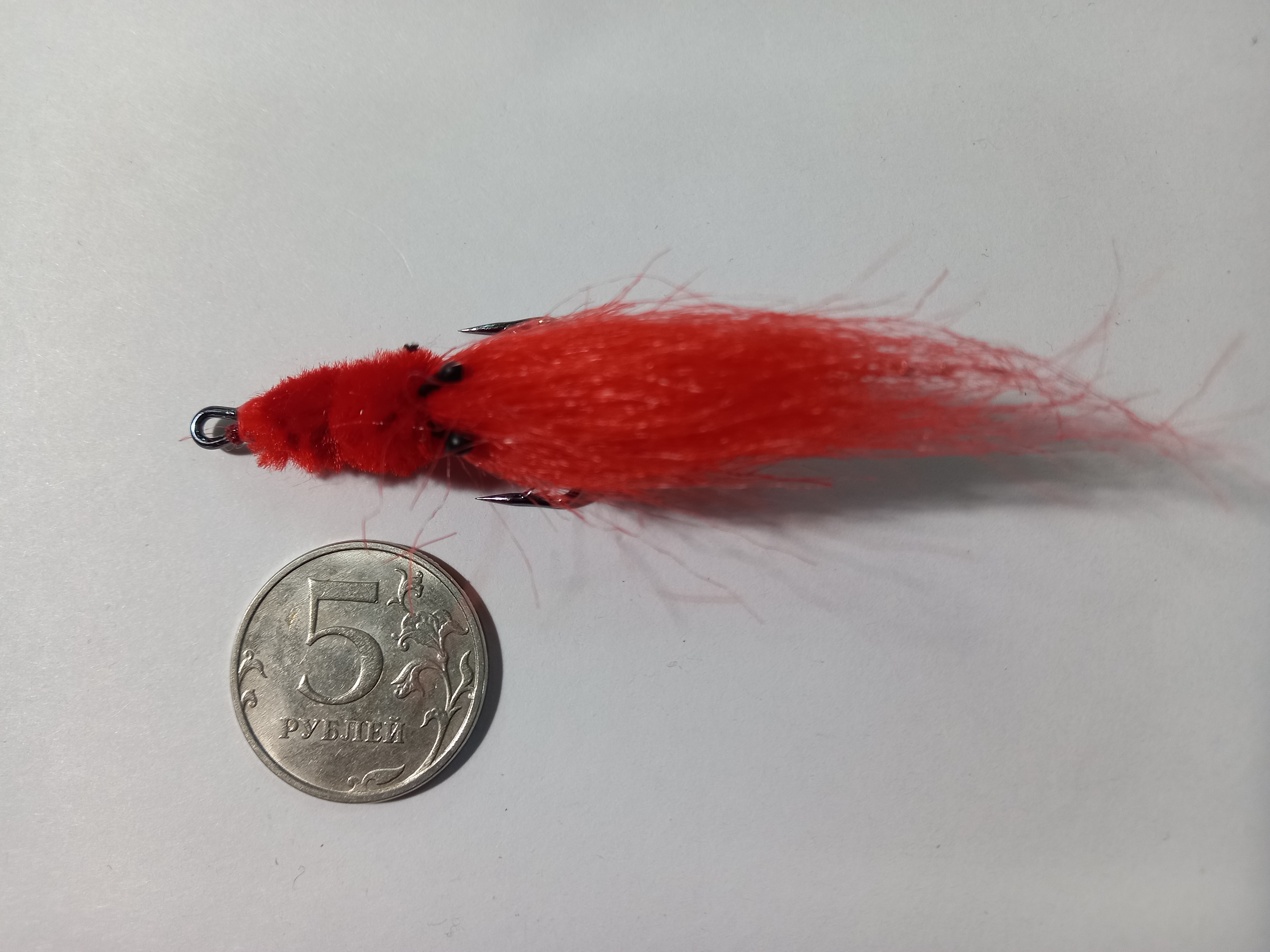 Муха "Креветка". Предназначена для ловли горбуши, сёмги, морской кумжи, морской и радужной форели. Связана двойнике.